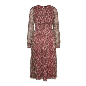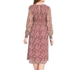 VERO MODA Smocked Midi Dress Womens Sz L Modest Feminine Floral Puffed Sleeve