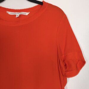 VERONICA BEARD 100% SILK Peplum Top Short Sleeve Tee Orange S172-SGG4370 Size 6