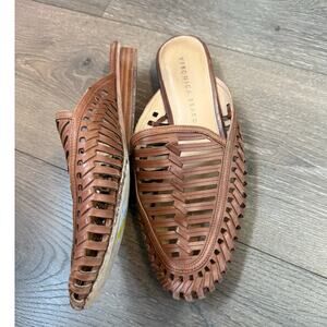 VERONICA BEARD ALBANIAN WOVEN LEATHER MULES IN BROWN Size 7