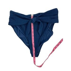 VERONICA BEARD Azoia Crinkle High-rise Bikini Bottom in Ocean Blue Size Medium; From Nordstrom; Made of a textured stretch fabric, the Azoia bikini bottom is detailed with a front tie detail.
