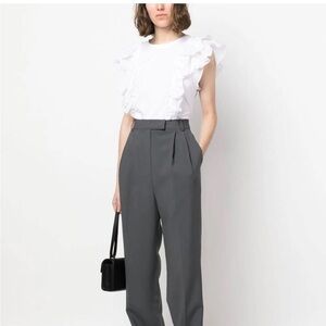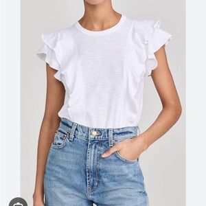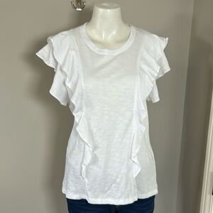 VERONICA BEARD Bea Short Sleeve Ruffle Tee White Crewneck Jersey Top Sz XL NEW