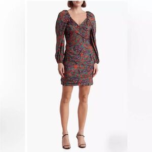 VERONICA BEARD Bellino Paisley Silk Blend Dress in Flame Red Multi size 2