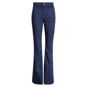 Own the latest trend with these flattering flare-leg jeans, designed with on-trend front patch pockets and a slight stretch for all-day comfort. The high-rise silhouette and wide leg opening create a leg-lengthening look that works from desk to weekend.