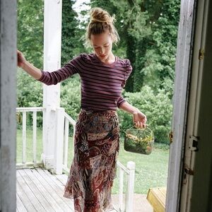 Veronica Beard Ribbed Puffed Sleeve Long Sleeve Top, best fit large/extra large (check measurements below),
