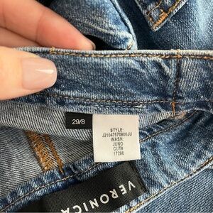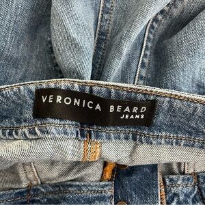 VERONICA BEARD Button Fly Crosbie High Rise Cropped Wide Leg Jeans. Exposed button-fly closure, two front pockets, two back pockets. Tonal stitching, silver-tone hardware, belt loops. Faded, whiskered, cropped-leg silhouette. Made in USA.