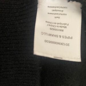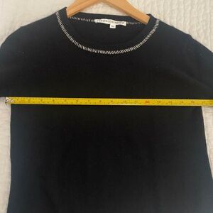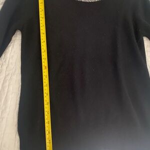 100% cashmere sweater worn once. Black with white stitching around neck and wrists. Excellent condition.