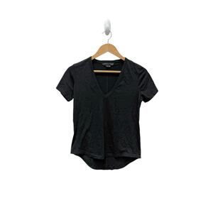 VERONICA BEARD Cindy V-Neck Short-Sleeve Pima Cotton Tee Black Size XS