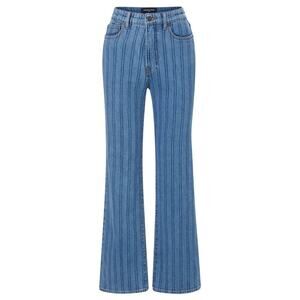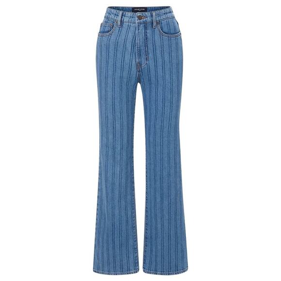 In premium Italian stretch denim, this Crosbie jean has a just-right crop and elongating tonal stripes. The high-rise, wide-leg silhouette is finished with patch pockets & our signature V belt loops. Wear with the Dahl jacket for a chic denim-on-denim set.