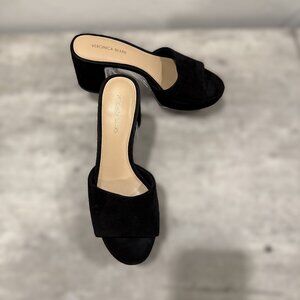 VERONICA BEARD DALI PLATFORM SLIDE SANDALS BLACK SUEDE SIZE: 6.5 M