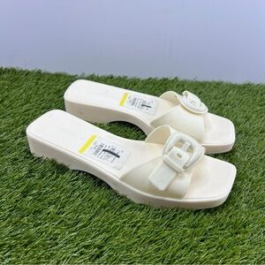 VERONICA BEARD Davina White Jelly Oversized Buckle Slide Sandals, Size 9M