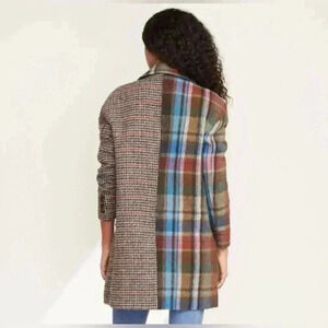 VERONICA BEARD Dickey Jacket Long Over Coat Wool Plaid Patchwork XS 0 2 $1200