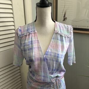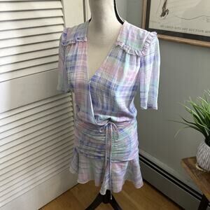 VERONICA BEARD Dress Womens 0 Lilac Plaid Dakota Silk Mini Ruched Feminine Party