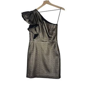 VERONICA BEARD Ensley Dress Womens Size 6 One Shoulder Black Gold Metallic