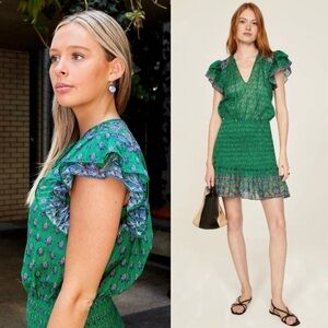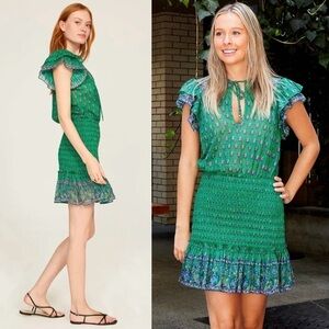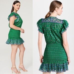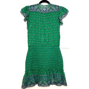 VERONICA BEARD Floral Paisley Smocked Flutter Short Sleeve Ruffled Mini Dress 8