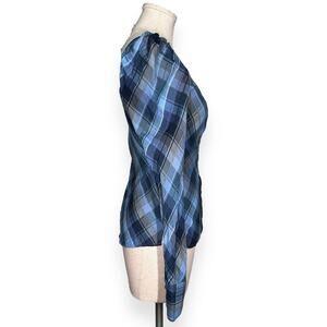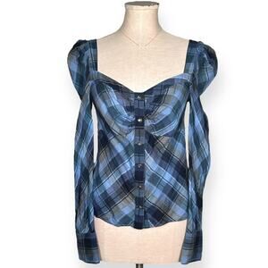 VERONICA BEARD Frankie Top Sparkle Sweetheart Neck Pearl Snap Blouse Plaid Blue