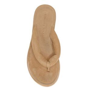 A cork platform lends beachy flair to these smooth suede wedge sandals.