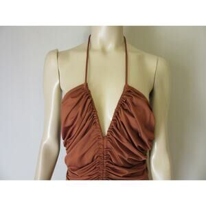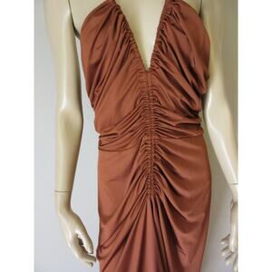 VERONICA BEARD Golden Brown Saskia Halter Ruched Sexy Size 16 V-Neck Midi Dress