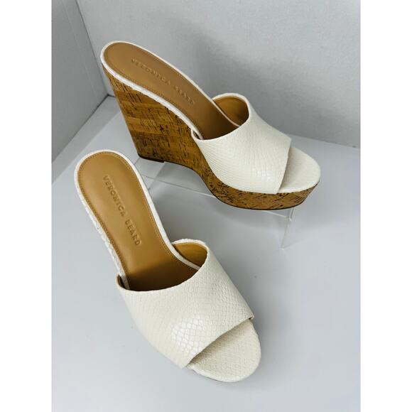 VERONICA BEARD IVORY SNAKE EMBOSSED DALI WEDGE WHITE sz 8