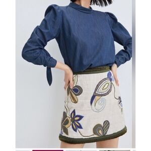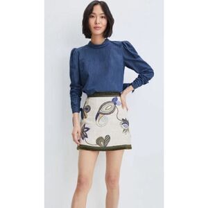 VERONICA BEARD Inga Embroidered Raw Silk Mini Skirt NWT Size 12