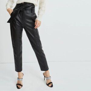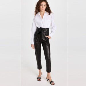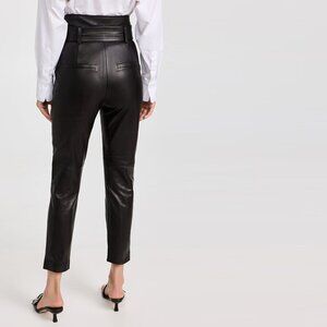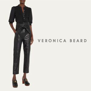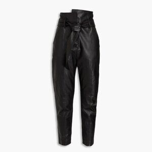 VERONICA BEARD Izera Straight-Leg Paper Bag Leather Pants Black 4 NWOT