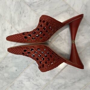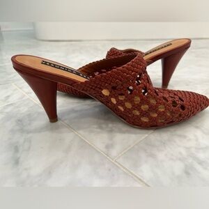 VERONICA BEARD Jacqlyn crocheted leather cone heel pointy toe mule size 37