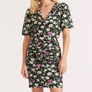 VERONICA BEARD Janis Ruched Floral-Print Dress