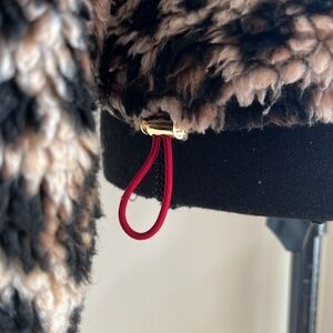 Veronica Beard Jeans leopard print sherpa faux fur pullover with collar, quarter zip, button-snap chest pocket. Gold tone hardware. Elastic pull tie at hem. FIT TIP: Fits true to size. FABRIC / MATERIAL: 100% Polyester In wonderful pre-owned condition!! No holes or stains! ***Size tag missing-Pls see measurements below.
