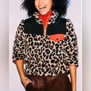 VERONICA BEARD Jeans Women’s Kylan Animal Print Sherpa Pullover Leopard Medium