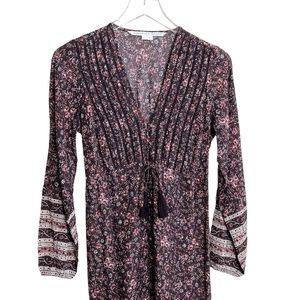 VERONICA BEARD | Kameya Floral Midi Dress Long Sleeve Boho Dark Plum Floral