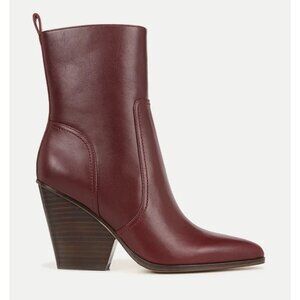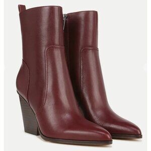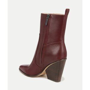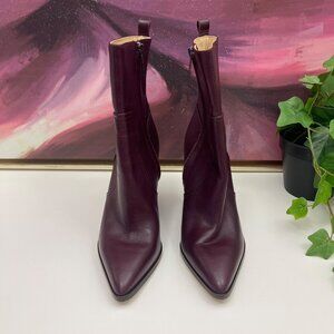 VERONICA BEARD Logan Leather Pointed Toe Block Heel Bootie in Merlot Red Size 7