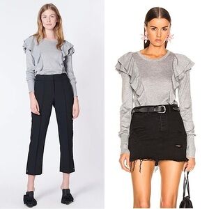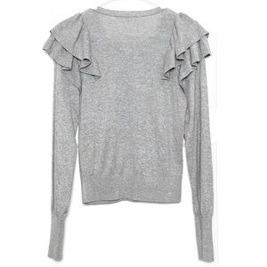 VERONICA BEARD Merallic Sparkle Knit Ruffle Front Long Sleeve Crewneck Sweater S