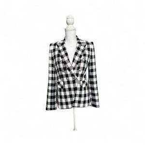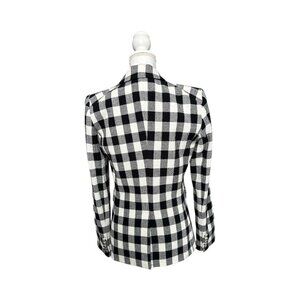 VERONICA BEARD Miller Dickey Plaid Jacket Blazer Size 4 Black White Linen Check