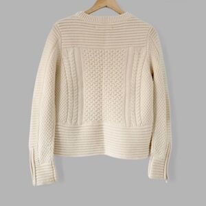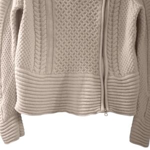 VERONICA BEARD Moto Chunky Cable Knit Fisherman Sweater Zip Wool Pull Over Biker
