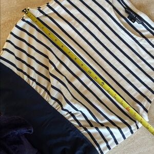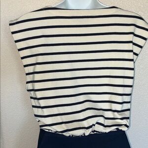 VERONICA BEARD Nautical Dress, Navy/Cream Striped Top, tiered Navy skirt. LG EUC