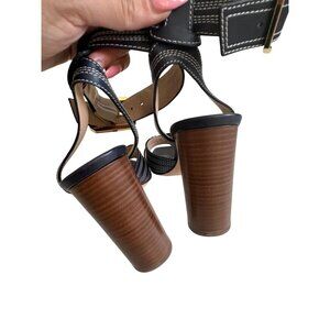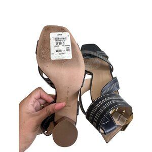 VERONICA BEARD Navy Leather Stacked Ankle Strap Heels Size 8