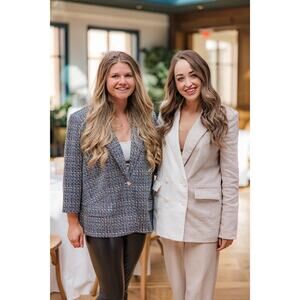 The Veronica Beard Braeton Dickey Jacket Blazer is a sophisticated and modern wardrobe staple, featuring an off-white and tan two-toned design for a striking contrast. Tailored for a structured yet flattering fit, this blazer includes sharp lapels, a single-breasted closure, and signature dickey compatibility for versatile styling. The neutral color palette enhances its timeless appeal, making it a perfect layering piece for both professional and casual looks. Designed in Size 8, this jacket exudes effortless elegance with a contemporary edge.