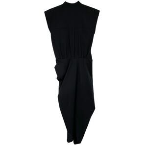 Black Stretch Cotton Ruched Shirt Dress