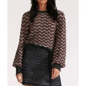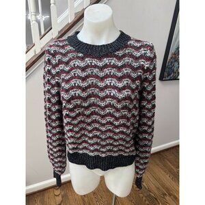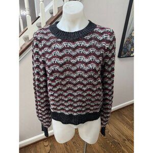 VERONICA BEARD Ruth Crewneck Sweater Alpaca Red Pink Gray Silver Academia Size Small