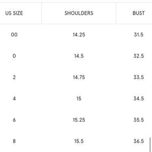 Sleeve length 31 3/4" Length 20 1/8", based on a size 2