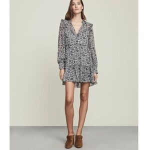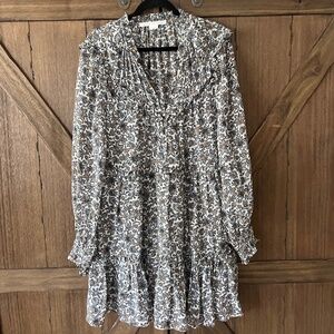 VERONICA BEARD Savile Floral Ruffled Silk Mini Dress Ecru Multi Size 12