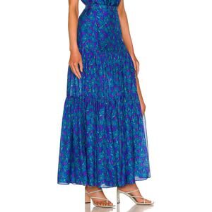 VERONICA BEARD Serence Skirt Cobalt Multi Floral Silk Tiered Slit Women's 00