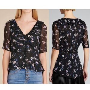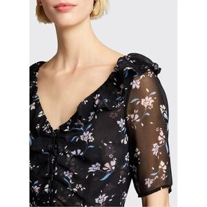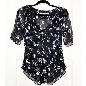 VERONICA BEARD Silk Chiffon Floral Print Ruffle V-Neck Short Sleeve Peplum Top 0