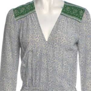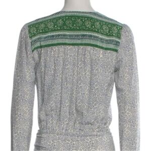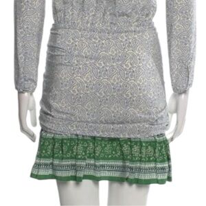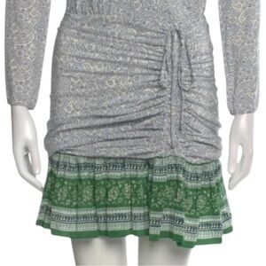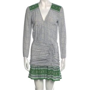 VERONICA BEARD Silk Dress w/ Ruched Skirt in Gray/Green Accents Size 2