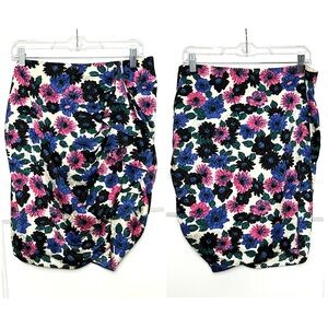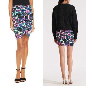 VERONICA BEARD Silk Floral Print Ruched Asymmetric Ruffle Pencil Mini Skirt 16