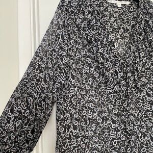 VERONICA BEARD Silk Print V Neck Blouse EUC