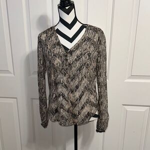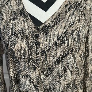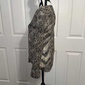Stylish snake print blouse. Long sleeves with a v-neckline. Perfect for any occasion.