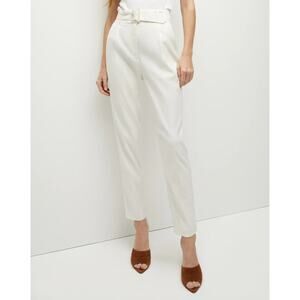 Chic and versatile, the Veronica Beard Sofia Pants are crafted from French stretch-linen with a tapered ankle-length leg. Featuring a high-rise waist with a detachable belt, zip fly with hook-and-bar closure, front pintuck detail, and a 4-pocket design. Lightweight and lined for all-day wear.