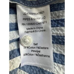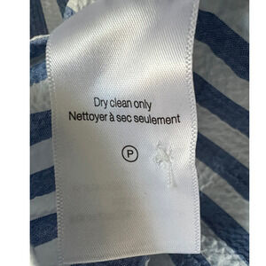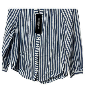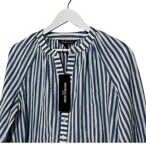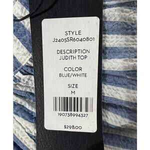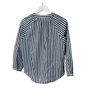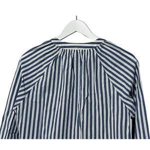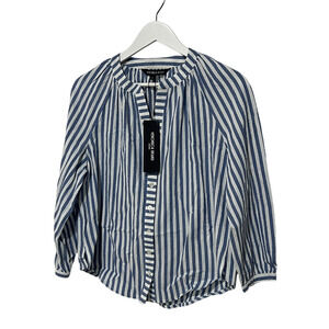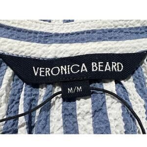 VERONICA BEARD TOP WOMENS MEDIUM JUDITH V-NECK PUFF SLEEVE BLOUSE BLUE WHITE