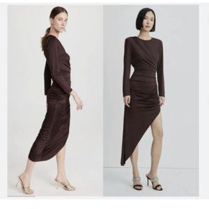 VERONICA BEARD TRISTANA ASYMMETRICAL RUCHED SATIN JERSEY OXBLOOD MIDI DRESS sz 8