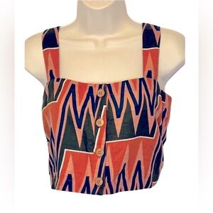 VERONICA BEARD Tiffany Square Neck Top, Sundance Abstract Linen, Size Large